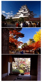 会津の「鶴ヶ城公園」は人もまばらでしたが,もみじや、桜や銀杏など取彩々の紅葉がすばらしくゆっくり見学できました。城の天守閣ではあの飯盛山も見渡せて、幕末の白虎隊の悲劇に思いを巡らせました。