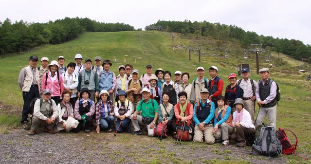 これより先はスキー場なので視界が切れ向こうの山々が美しく目に入る。ここで、B組に合流そこからリフトで降りる人。そのまま何人かは、横一列になり口笛を吹きながらご機嫌で下った人。地蔵峠の湯の丸高原ホテルで露天風呂温泉に入り、肌に優しい湯が疲れを癒してくれた。