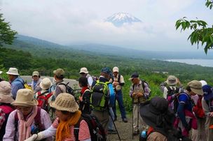 ここからの眺望は素晴らしい。眼下に山中湖が広がっている。その左手に晴天であれば雄大な富士山の全姿が眺められるのだが、今日はあいにく雲に隠れて頭だけ見せている。右手には南アルプスの山々が連なっている。それでも雲の切れ間から頭だけだが見る事が出来て幸運だった。