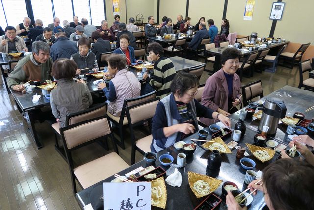 午後1時ごろ、以前第2回PNK懇親旅行の折、昼食で立ち寄ったことがある「うどん茶屋水沢万葉亭」に到着、日本三大うどんのひとつで有名な「水沢うどん」を再び賞味、昼食。こしが強く、のど越しの感触が良い。前のこんにゃくバイキングで満腹のはずがぺろりと平らげた。