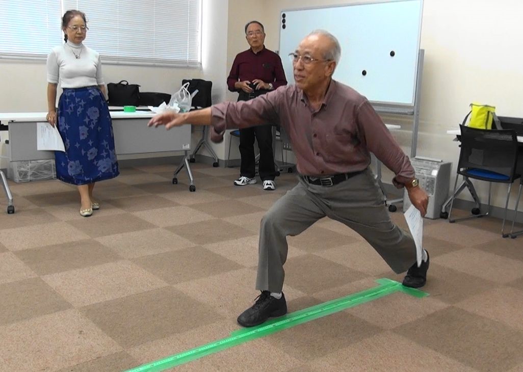 測定はバランスを崩さずできる限り大股で、連続して2歩あるき、2歩分の歩幅を測定します。その歩幅を身長で割り、値が1.3以上だと「ロコモ度1」と判定され、運動機能は正常と判断されます。皆さんのほとんどが正常のようでした。