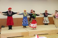 「フラダンス」が始まりました。最初はソロで次いで6人のインスタント・フラダンサーが加わり、拍手喝采で大いに沸きました。